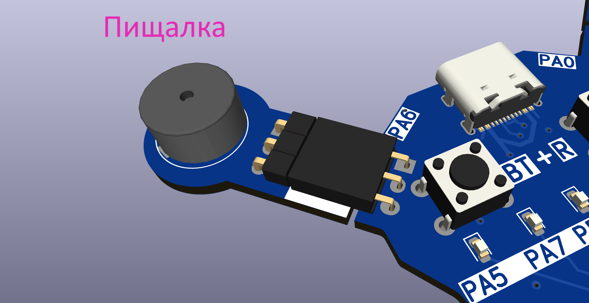 Давайте напишемо програму, яка буде періодично видавати звук з частотою 500 Гц на пін PA6, до якого підключимо пищалку